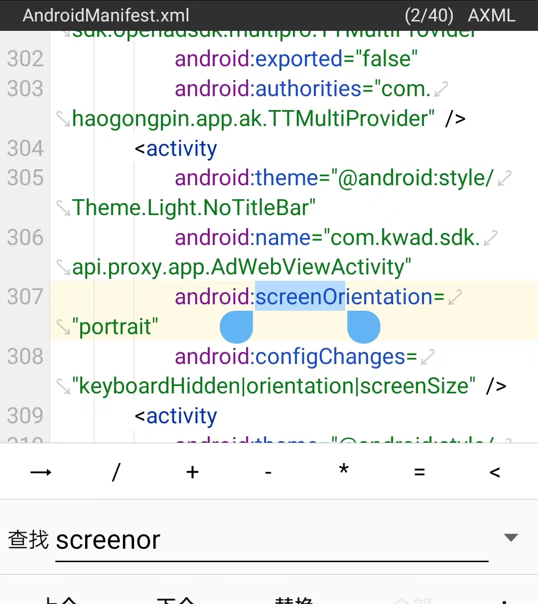 选择全部portrait(默认竖屏)整体替换为landscape(横屏),反之