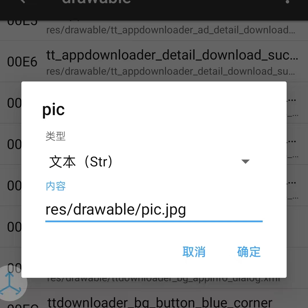 找到drawable,进入第一个drawable,新建pic,填写内容为地址,保存退回